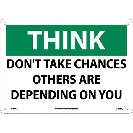 NMC TS131AB THINK - DON'T TAKE CHANCES - OTHERS ARE DEPENDING ON YOU Sign – 14 in. x 10 in. Standard Aluminum Safety Sign with White/Black Text on Green/White Base