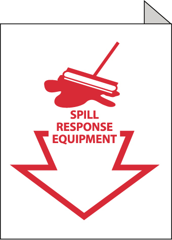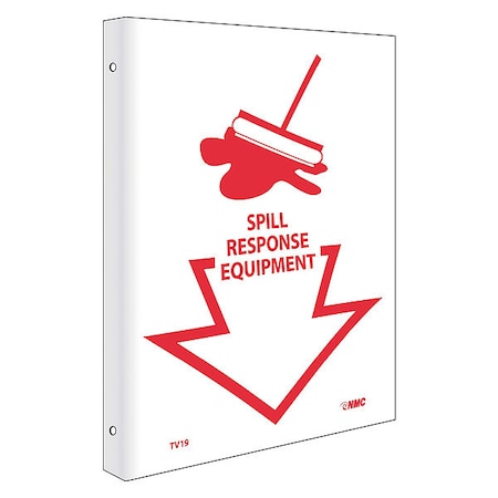 NMC TV19 Flanged Sign, Legend "SPILL RESPONSE EQUIPMENT" with Graphic, 8" Length x 10" Height, Rigid Plastic , Red on White