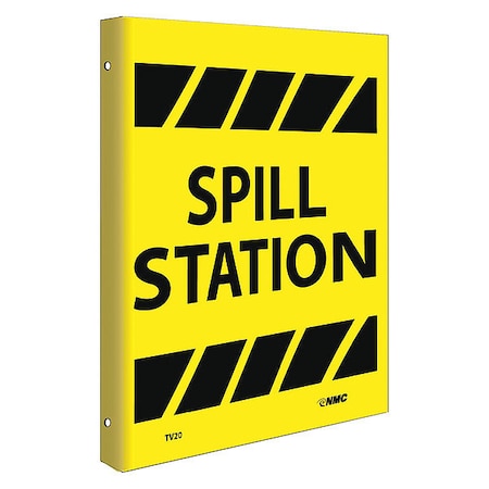 NMC TV20 Flanged Sign, Legend "SPILL STATION", 8" Length x 10" Height, Rigid Plastic , Black on Yellow