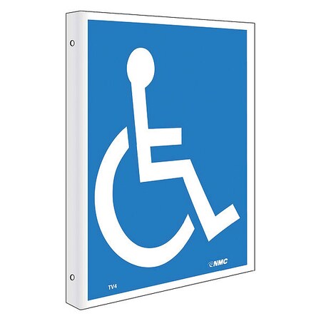 NMC TV4 Flanged Sign with Handicapped Symbol, 8" Length x 10" Height, Rigid Plastic , White on Blue
