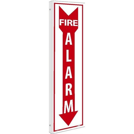 NMC TV42 Flanged Sign, Legend "FIRE ALARM" with Arrow Graphic, 4" Length x 18" Height, Rigid Plastic , White on Red