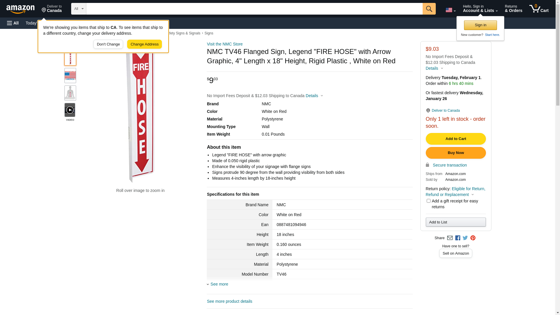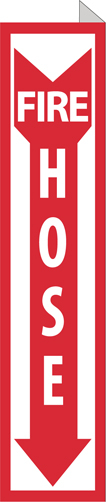 NMC TV46 Flanged Sign, Legend "FIRE HOSE" with Arrow Graphic, 4" Length x 18" Height, Rigid Plastic , White on Red