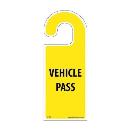 8-1/4 Inch High x 3-1/4 Inch Wide, VEHICLE PASS Parking/Vehicle Hang Tag1 Side, Plastic, Yellow, English