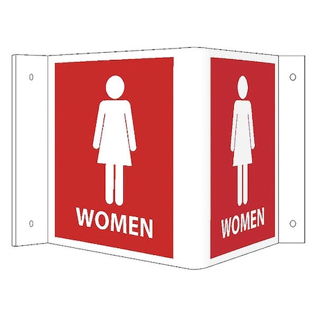 NMC VS16R Visi Sign, Legend "WOMEN" with Graphic, 15" Length x 8" Height, PVC Plastic, Red