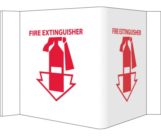 - Visibility: the sign has a fire extinguisher graphic and down arrow with the legend “FIRE EXTINGUISHER” printed in bold and legible text to ensure better readability