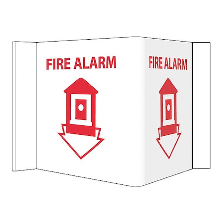 NMC VS3W Visi Sign, Legend "FIRE ALARM" with Graphic, 9" Length x 6" Height, PVC Plastic, White