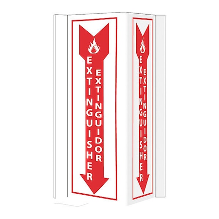 NMC VS44W Bilingual Visi Sign, Legend "EXTINGUISHER" with Arrow Graphic, 9" Length x 16" Height, PVC Plastic, White on Red