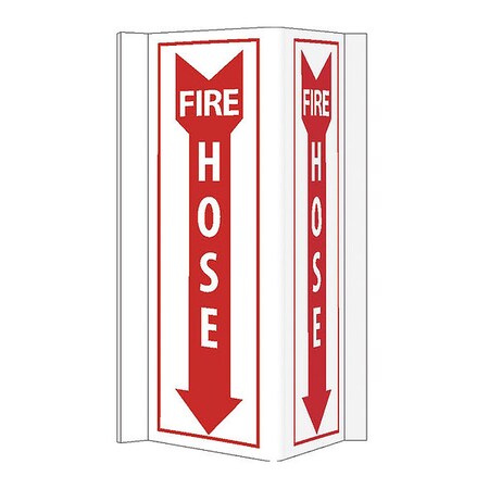 NMC VS45W Visi Sign, Legend "FIRE HOSE" with Arrow Graphic, 9" Length x 16" Height, PVC Plastic, White on Red