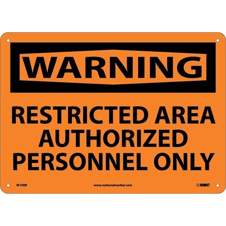 NMC W10RB WARNING - RESTRICTED AREA AUTHORIZED PERSONNEL ONLY - 14 in. x 10 in. Plastic Warning Signage with Black Text on Orange Base