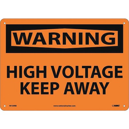 NMC W139RB OSHA Sign, Legend "WARNING - HIGH VOLTAGE KEEP AWAY", 14" Length x 10" Height, Rigid Plastic, Black on Orange