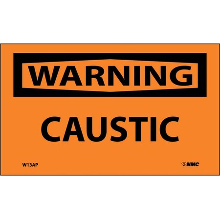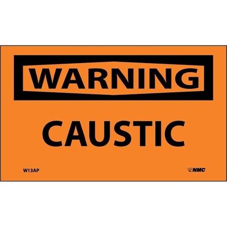 NMC W13AP OSHA Sign, Legend "WARNING - CAUSTIC", 5" Length x 3" Height, Pressure Sensitive Vinyl, Black on Orange (Pack of 5)