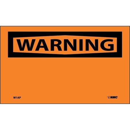 NMC W1AP OSHA Sign, Legend "WARNING", 5" Length x 3" Height, Pressure Sensitive Vinyl, Black on Orange (Pack of 5)