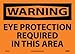 | Feature | Header "WARNING" and legend "EYE PROTECTION REQUIRED IN THIS AREA" |