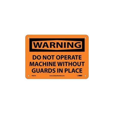 NMC W261R OSHA Sign, Legend "WARNING - DO NOT OPERATE MACHINE WITHOUT GUARDS IN PLACE", 10" Length x 7" Height, Rigid Plastic, Black on Orange
