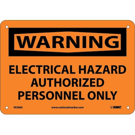 NMC W268A OSHA Sign, Legend "WARNING - ELECTRICAL HAZARD AUTHORIZED PERSONNEL ONLY", 10" Length x 7" Height, Aluminum, Black on Orange