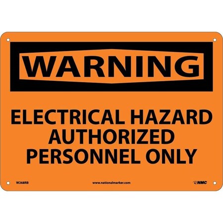 NMC W268PB OSHA Sign, Legend "WARNING - ELECTRICAL HAZARD AUTHORIZED PERSONNEL ONLY", 14" Length x 10" Height, Pressure Sensitive Vinyl, Black on Orange