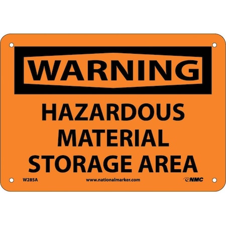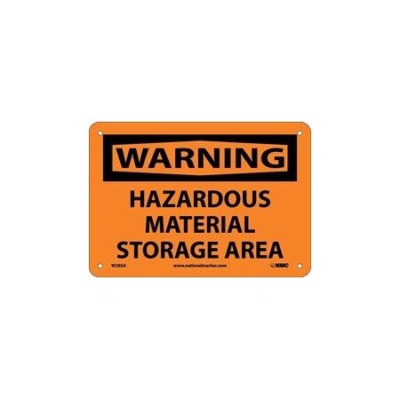 NMC W285A OSHA Sign, Legend "WARNING - HAZARDOUS MATERIAL STORAGE AREA", 10" Length x 7" Height, Aluminum, Black on Orange