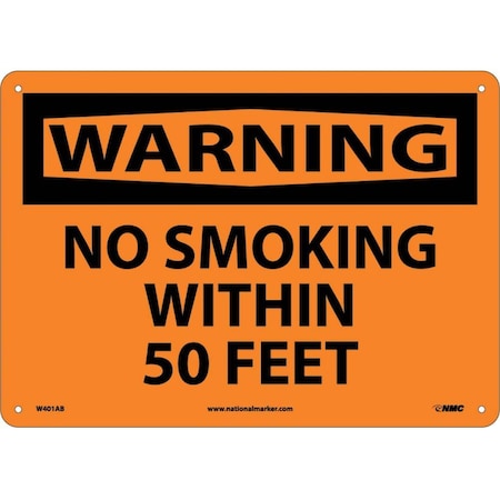 NMC W401AB WARNING - NO SMOKING WITHIN 50 FEET Sign - 14 in. x 10 in. Aluminum Warning Sign with Black Text over Orange Base