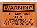 | Feature | Header "WARNING" and legend "THIS MACHINE STARTS AUTOMATICALLY KEEP HANDS AWAY" |