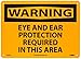 - Visibility: the personal protection signage has the legend “WARNING EYE AND EAR PROTECTION REQUIRED IN THIS AREA” printed in legible and bold text to ensure clear visibility even in poor lighting conditions