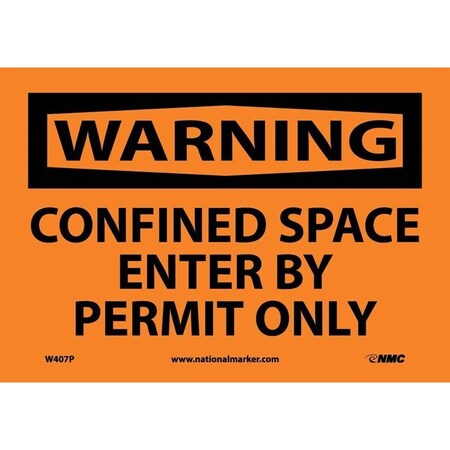 NMC W407PB OSHA Sign, Legend "WARNING - CONFINED SPACE ENTER BY PERMIT ONLY", 14" Length x 10" Height, Pressure Sensitive Vinyl, Black on Orange