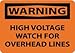 - Header "WARNING" and legend "HIGH VOLTAGE WATCH FOR OVERHEAD LINES"