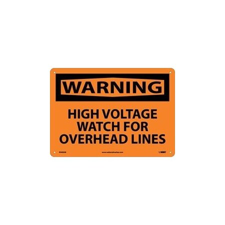 NMC W409P OSHA Sign, Legend "WARNING - HIGH VOLTAGE WATCH FOR OVERHEAD LINES", 10" Length x 7" Height, Pressure Sensitive Vinyl, Black on Orange
