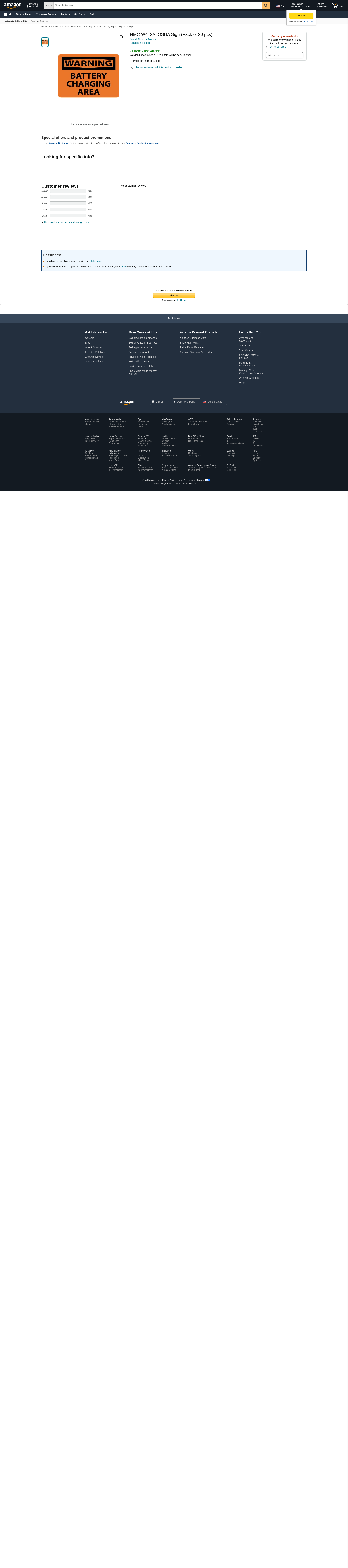 NMC W412A Osha Sign, Pack of 20 pcs
