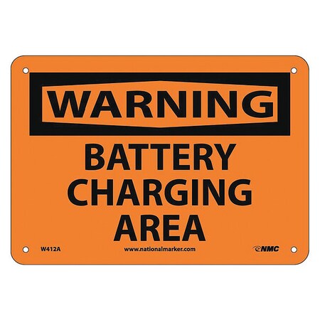 NMC W412A OSHA Sign, Legend "WARNING - BATTERY CHARGING AREA", 10" Length x 7" Height, Aluminum, Black on Orange