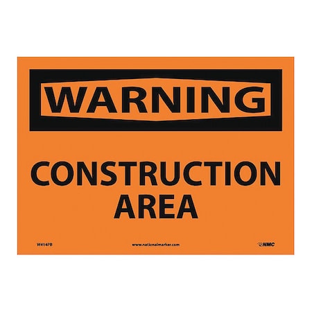 NMC W414PB OSHA Sign, Legend "WARNING - CONSTRUCTION AREA", 14" Length x 10" Height, Pressure Sensitive Vinyl, Black on Orange