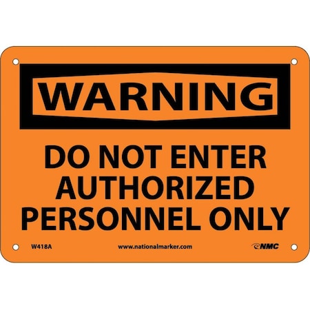 NMC W418A WARNING - DO NOT ENTER AUTHORIZED PERSONNEL ONLY - 10 in. x 7 in. Aluminum Warning Signage with Black Text on Orange Base