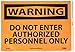 | Feature | Header "WARNING" and legend "DO NOT ENTER AUTHORIZED PERSONNEL ONLY" |