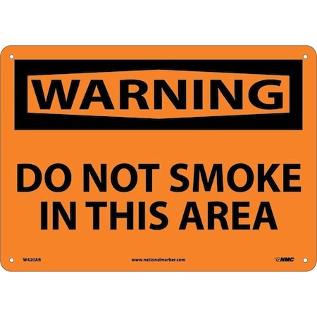 NMC W420PB OSHA Sign, Legend "WARNING - DO NOT SMOKE IN THIS AREA", 14" Length x 10" Height, Pressure Sensitive Vinyl, Black on Orange