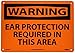| Feature | Header "WARNING" and legend "EAR PROTECTION REQUIRED IN THIS AREA" |
