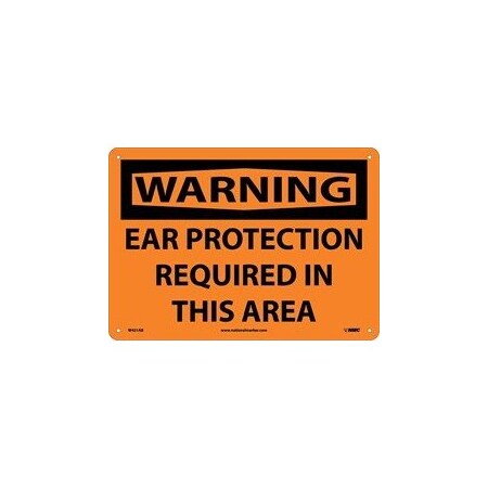 NMC W421RB WARNING - EAR PROTECTION REQUIRED IN THIS AREA Sign - 14 in. x 10 in. Rigid Plastic Signage with Black on Orange