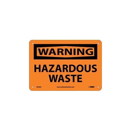 NMC W426A OSHA Sign, Legend "WARNING - HAZARDOUS WASTE", 10" Length x 7" Height, Aluminum, Black on Orange