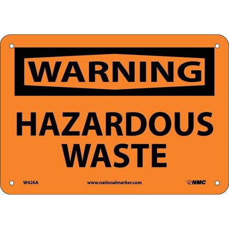 NMC W426AB OSHA Sign, Legend "WARNING - HAZARDOUS WASTE", 14" Length x 10" Height, Aluminum, Black on Orange