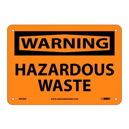 NMC W426RB OSHA Sign, Legend "WARNING - HAZARDOUS WASTE", 14" Length x 10" Height, Rigid Plastic, Black on Orange