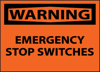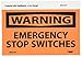 Warning Emergency Stop Switches Label, P, Package Quantity 5