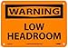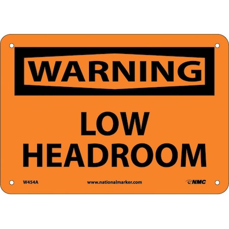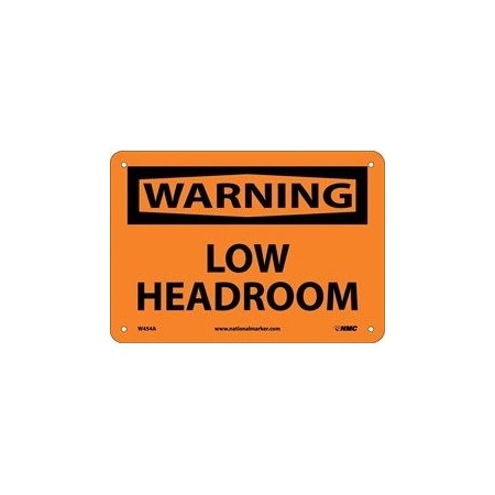 NMC W454A OSHA Sign, Legend "WARNING - LOW HEADROOM", 10" Length x 7" Height, Aluminum, Black on Orange