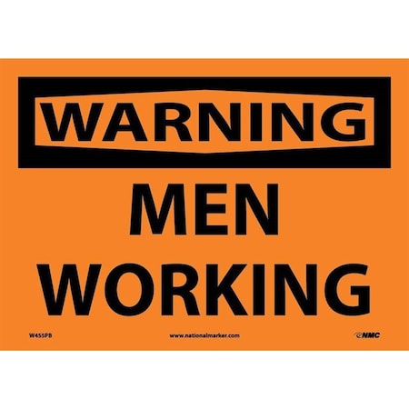 NMC W455RB OSHA Sign, Legend "WARNING - MEN WORKING", 14" Length x 10" Height, Rigid Plastic, Black on Orange