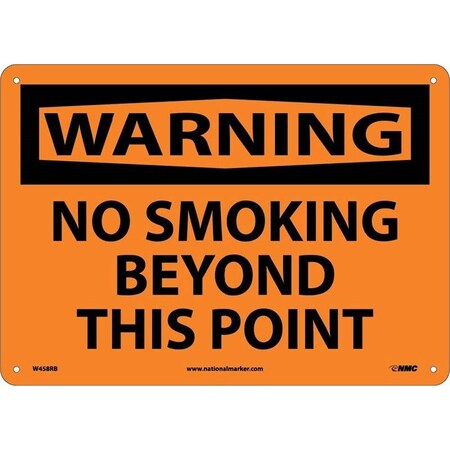 NMC W458AB WARNING - NO SMOKING BEYOND THIS POINT Sign - 14 in. x 10 in., Black Text on Orange, Aluminum Warning Sign