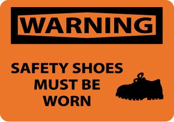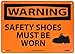 | Feature | Header "WARNING" and Legend "SAFETY SHOES MUST BE WORN" with Graphic |