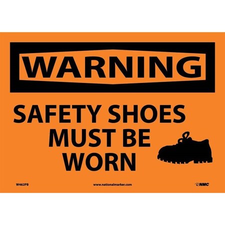 NMC W462RB WARNING - SAFETY SHOES MUST BE WORN Sign - 14 in. x 10 in. Rigid Plastic PPE Sign,Orange