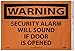 - Header "WARNING" and Legend "SECURITY ALARM WILL SOUND IF DOOR IS OPENED"