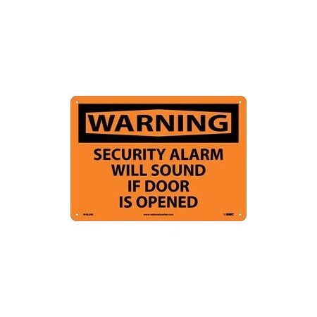 NMC W463PB OSHA Sign, Legend "WARNING - SECURITY ALARM WILL SOUND IF DOOR IS OPENED", 14" Length x 10" Height, Pressure Sensitive Vinyl, Black on Orange