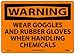 | Feature | Header "WARNING" and Legend "WEAR GOGGLES AND RUBBER GLOVES WHEN HANDLING CHEMICALS" |