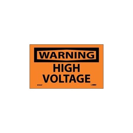 NMC W49A OSHA Sign, Legend "WARNING - HIGH VOLTAGE", 10" Length x 7" Height, Aluminum, Black on Orange