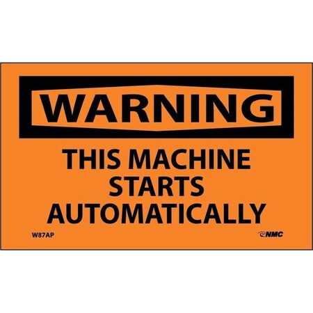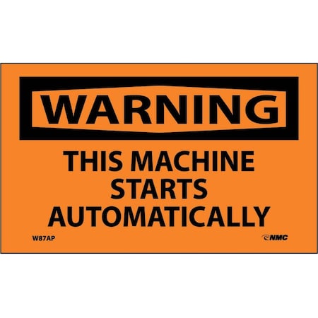 NMC W87AP OSHA Sign, Legend "WARNING - THIS MACHINE STARTS AUTOMATICALLY", 5" Length x 3" Height, Pressure Sensitive Vinyl, Black on Orange (Pack of 5)