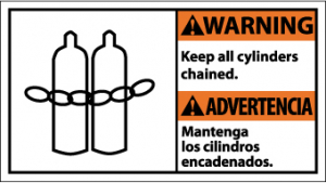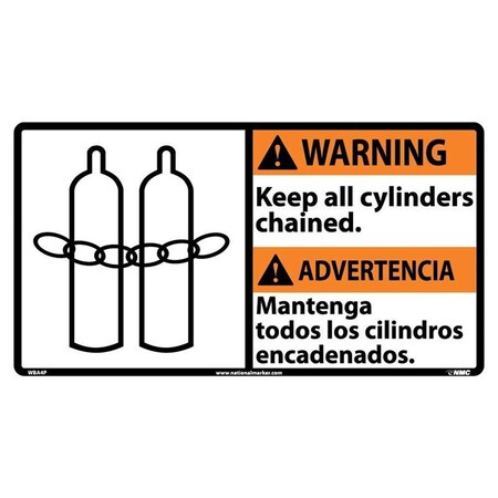 Warning Keep All Cylinders Chained Sign - Bilingual, WBA4P